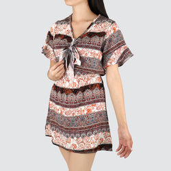 Agotado - Vestido Juvenil con Abertura Frontal color Café con Azul+sp.priceRaw ? 'price price--on-sale' : 'price'">
