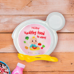 Agotado - Set de Plato Transparente y Cubiertos Amarillos para Bebé, Cocomelon "Healthy food", Nuby+sp.priceRaw ? 'price price--on-sale' : 'price'">