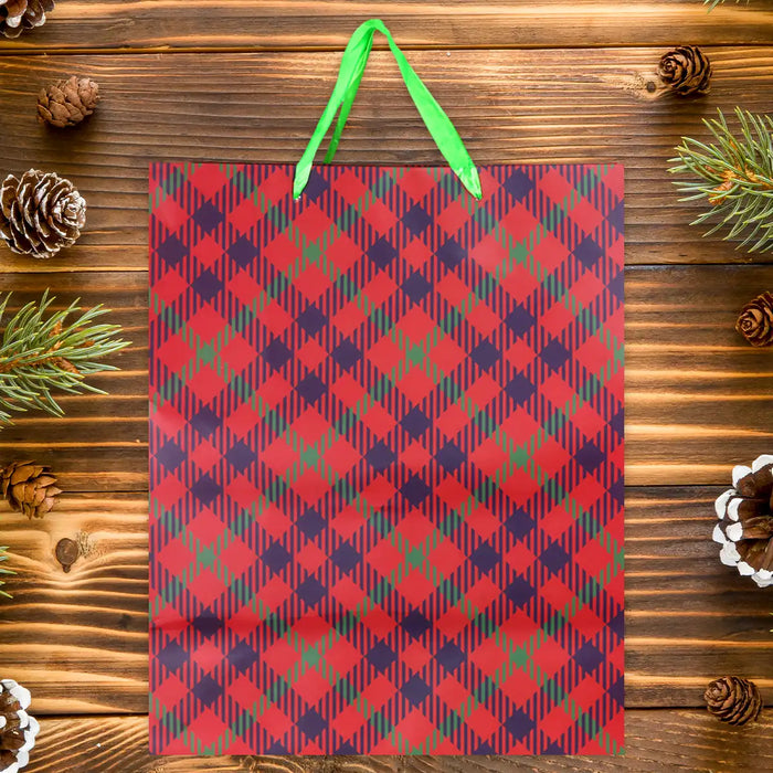Bolsa de Regalo Navideña, Diseño Cuadros, Color Rojo