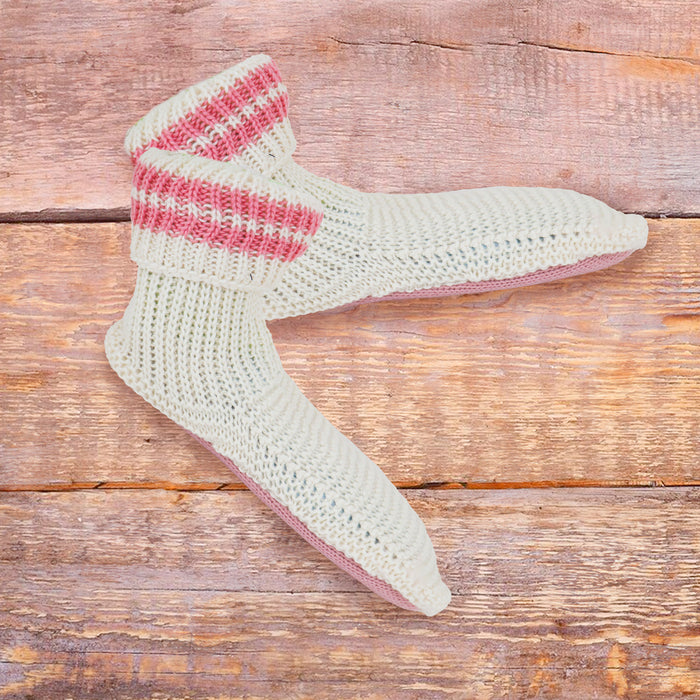 Botines de Suéter de Punto, Color Blanco con Rosa