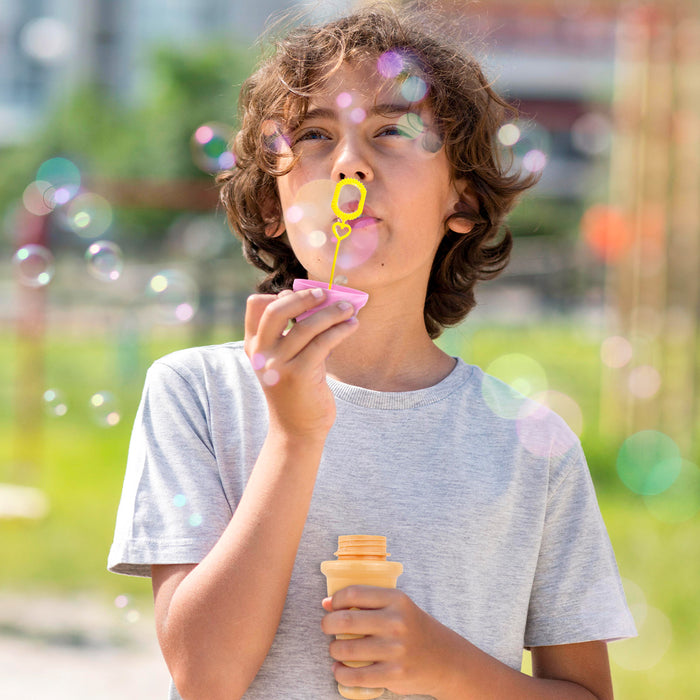 - Fácil de usar, solo abre, sopla y observa las burbujas volar.