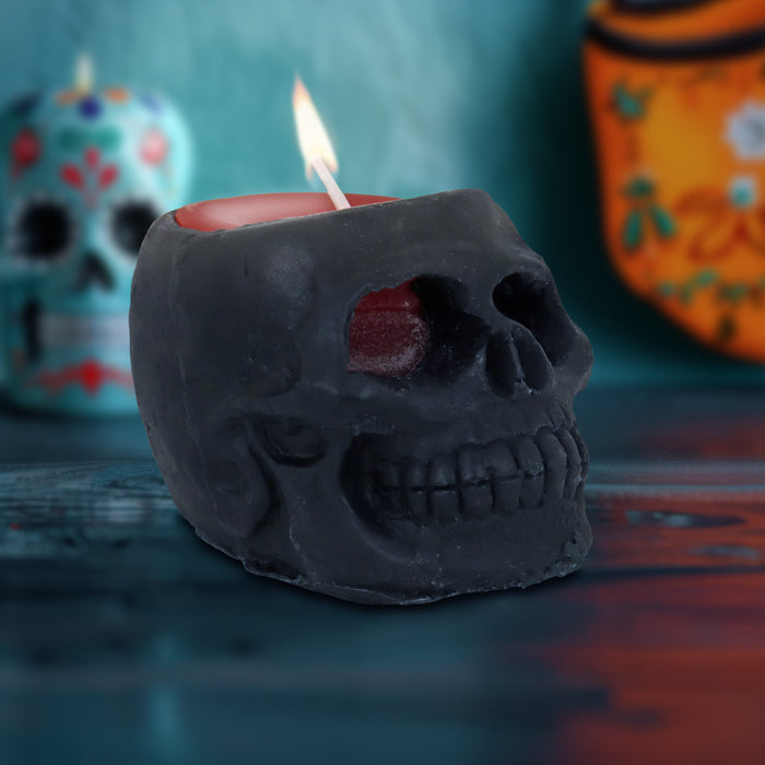 Haz que tu decoración de Halloween sea inolvidable con esta vela en forma de calavera, que combina estilo y atmósfera en un solo producto.
