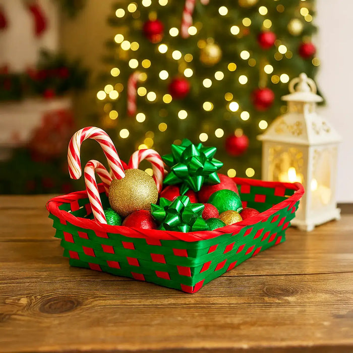 Canasta de Bamboo Navideña, Color Verde, 20x30 cm