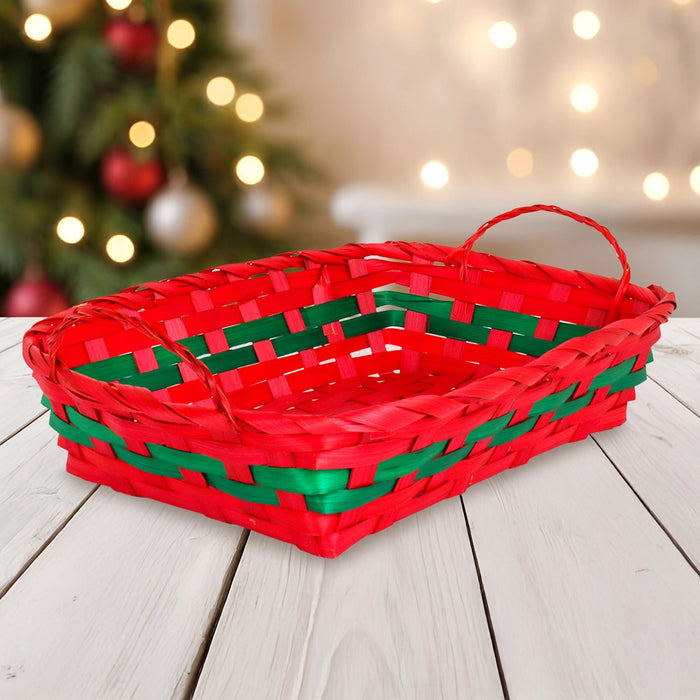 Canasta Navideña, Color Rojo y Verde, 30 x 20 cm