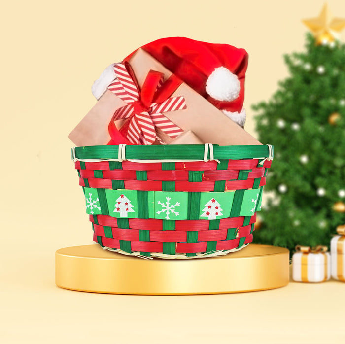 - Añade un toque festivo y elegante a tus decoraciones con esta encantadora canasta de bambú en colores clásicos de Navidad.