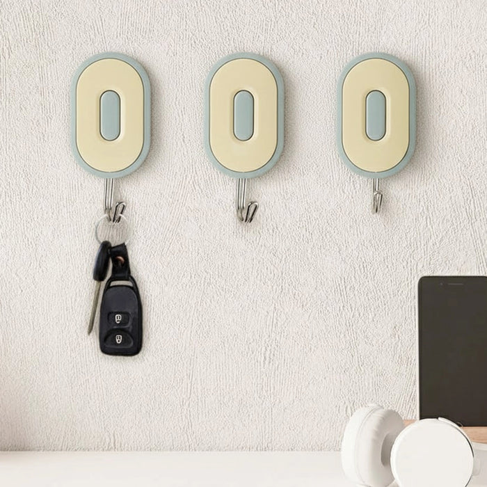 Colgadores Metálicos Ovalados Autoadhesivos, Color Verde, 3 pzas