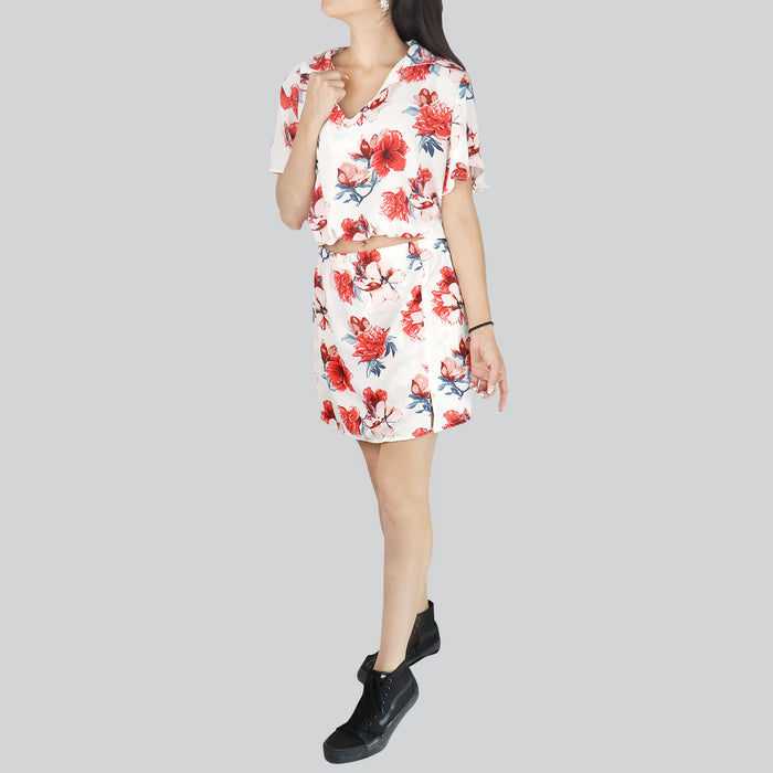 Conjunto de Blusa y Short Falda para Dama, color Blanco con Rojo