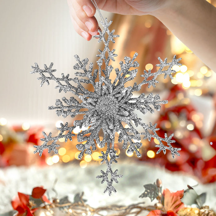 Copo de Nieve, Ornamento Navideño con Glitter, Color Plata