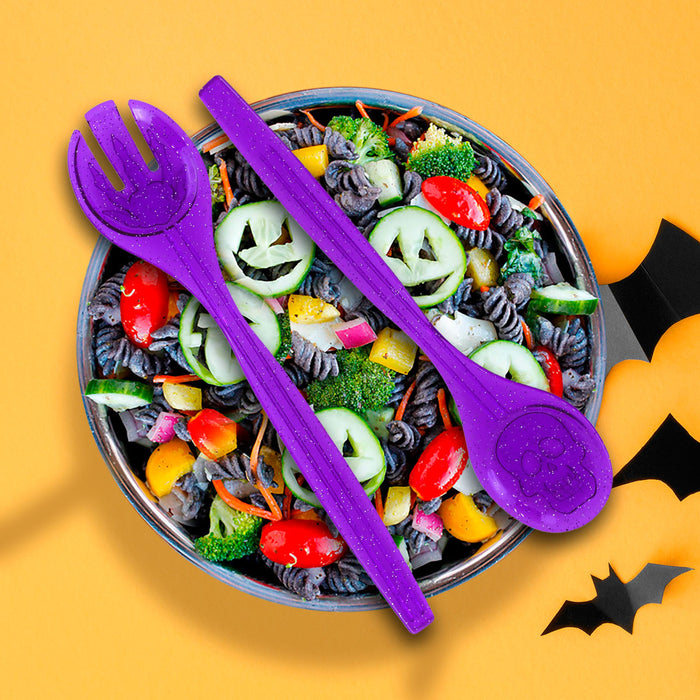 Cucharas color Morado con Diseño de Halloween para Ensalada