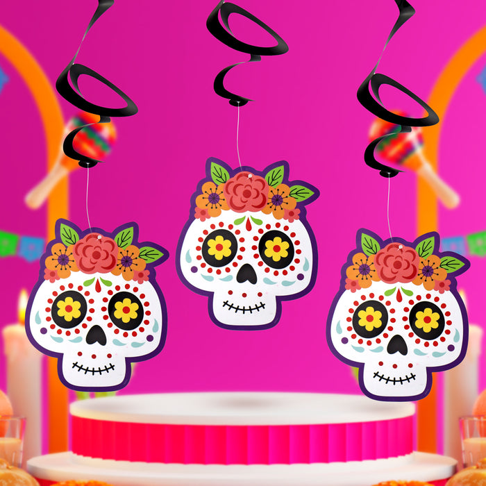 Decoraciones Colgantes con Espiral con Diseño de Día de Muertos