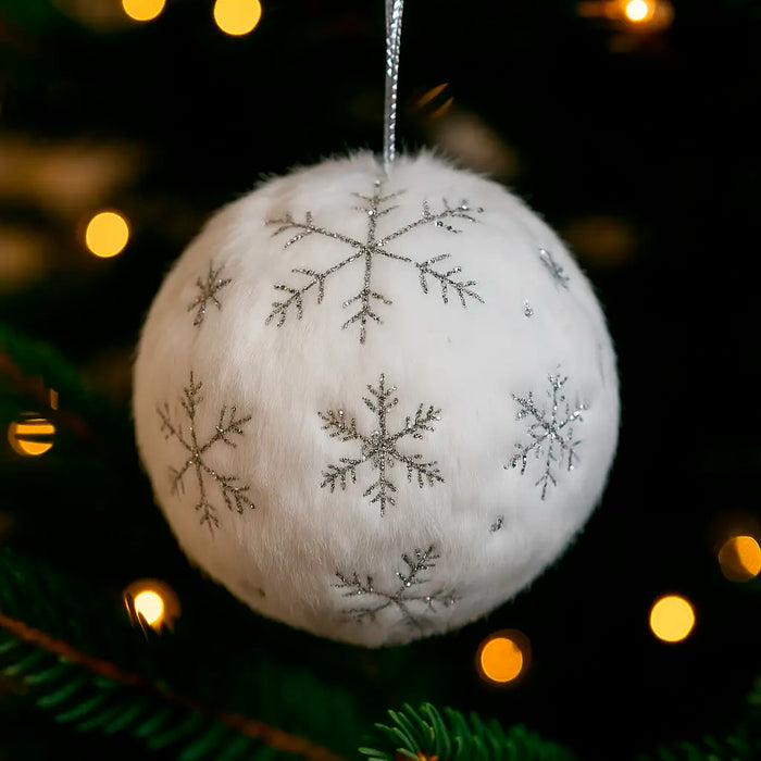 Esfera Navideña, Color Blanco con Copos
