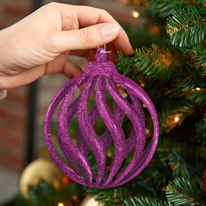 Esfera Navideña, Glitter, Color Morado, 17 cm