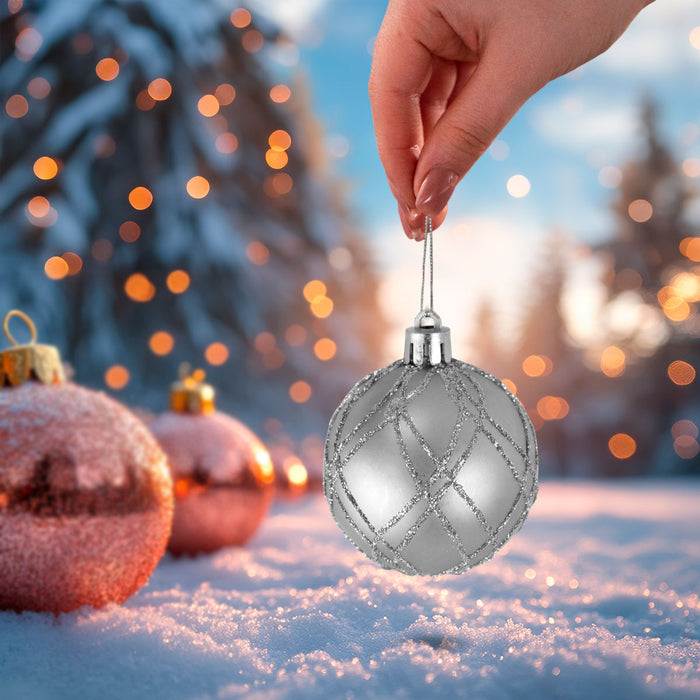 Esferas Navideñas con Glitter, Color Plateado, 2 pzas