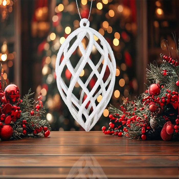 Esferas Navideñas con Glitter, Forma Lágrima, Color Blanco, 2 pzas