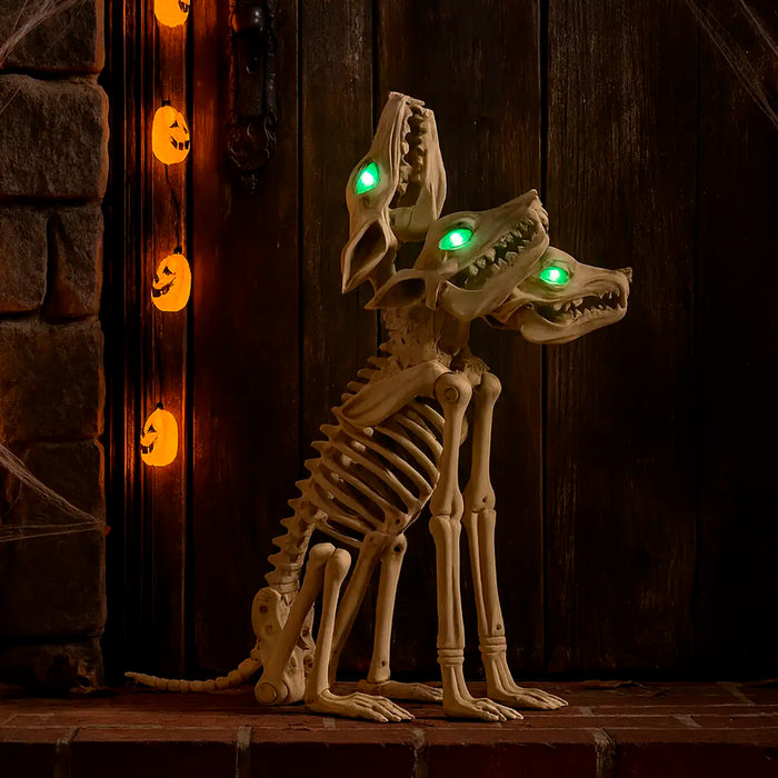 - Figura de esqueleto de lobo con tres cabezas que dará un toque terrorífico a tu decoración.