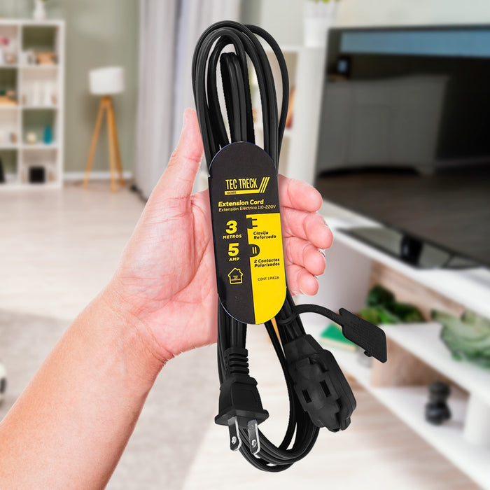 - Tiene 3 metros de longitud con 2 contactos polarizados.