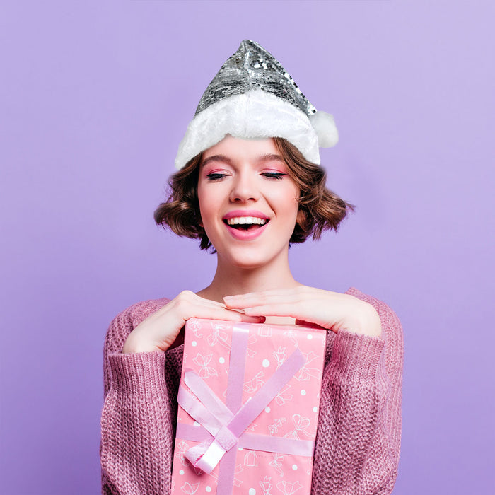 Gorro Navideño de Santa Claus con Lentejuelas color Plata