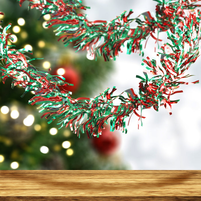 Guirnalda Navideña de Tinsel color Verde con Rojo