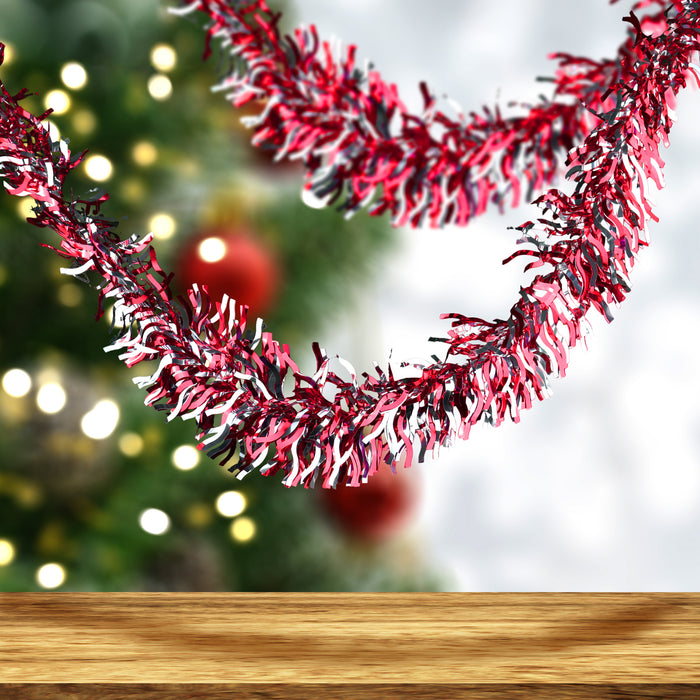 Guirnalda Navideña de Tinsel color Vino con Plata