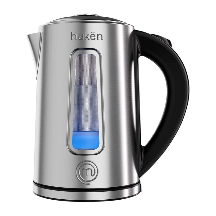 La manera en la que preparas tus bebidas favoritas no será la misma, tu nueva Jarra Eléctrica Steel-Fuse de MasterChef by Hukën llegó para tener la temperatura perfecta en segundos. Su diseño premium la convierte en algo único en el mercado, ya que nuestra tetera eléctrica con cuerpo de acero inoxidable ¡cuenta con un infusor removible! Funciona con un solo botón en su asa ergonómica y tiene una amplia ventana de supervisión del agua. Su luz LED interna, que indica cuando está en uso, y su apagado automático cuando el agua llega a hervor, hacen de tu experiencia a la hora de preparar tu bebida algo sencillo. Su base giratoria la hace perfecta para diestros y zurdos.