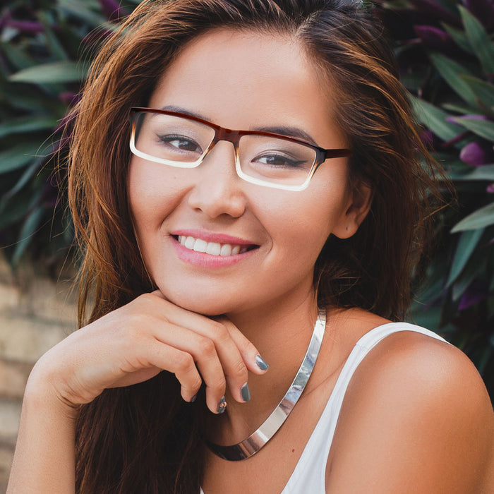 Lentes de Lectura, Forma Rectangular, Color Café con Degradado, +3.00
