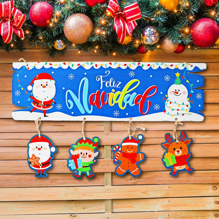 Letrero Colgante "Feliz Navidad" para Puerta, Color Azul