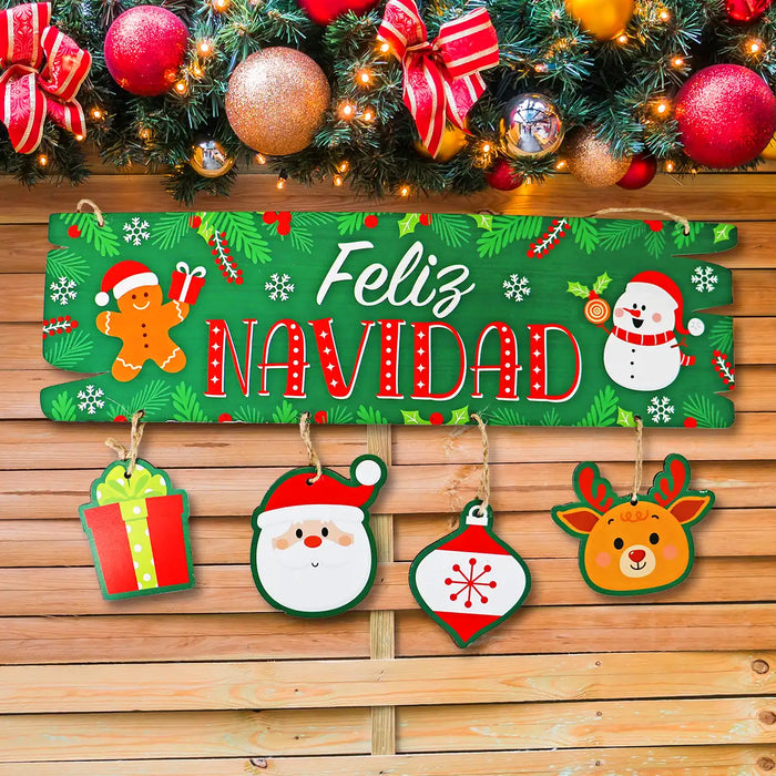 Letrero Colgante "Feliz Navidad" para Puerta, Color Verde