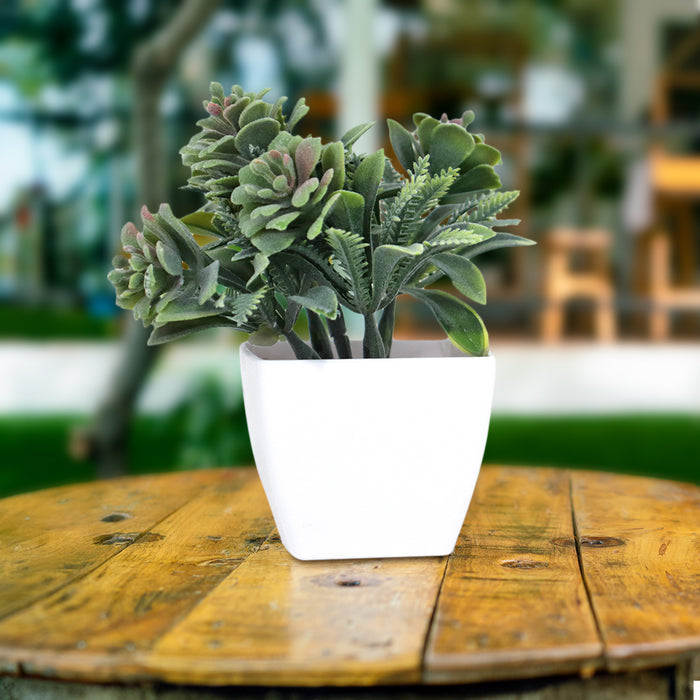 Maceta Blanca con Suculenta Artificial, 10x5cm