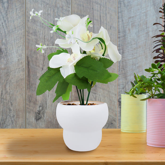 Maceta con Orquídea Artificial, Color Blanco