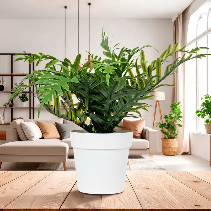 - Base decorativa tipo maceta que combina con cualquier ambiente.
