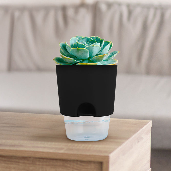 Mantén tus plantas siempre hidratadas con esta maceta de autorriego, ideal para interiores y exteriores. Su diseño innovador de dos capas permite almacenar agua en la base que absorbe la humedad y la distribuye gradualmente a la tierra.