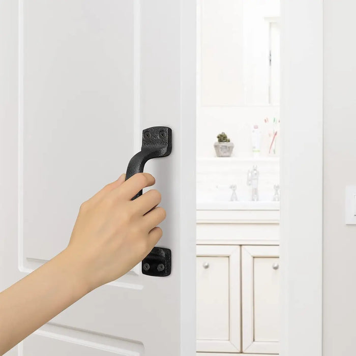 - Fabricado en metal tipo hierro fundido, grueso y resistente, ideal para puertas pesadas.
