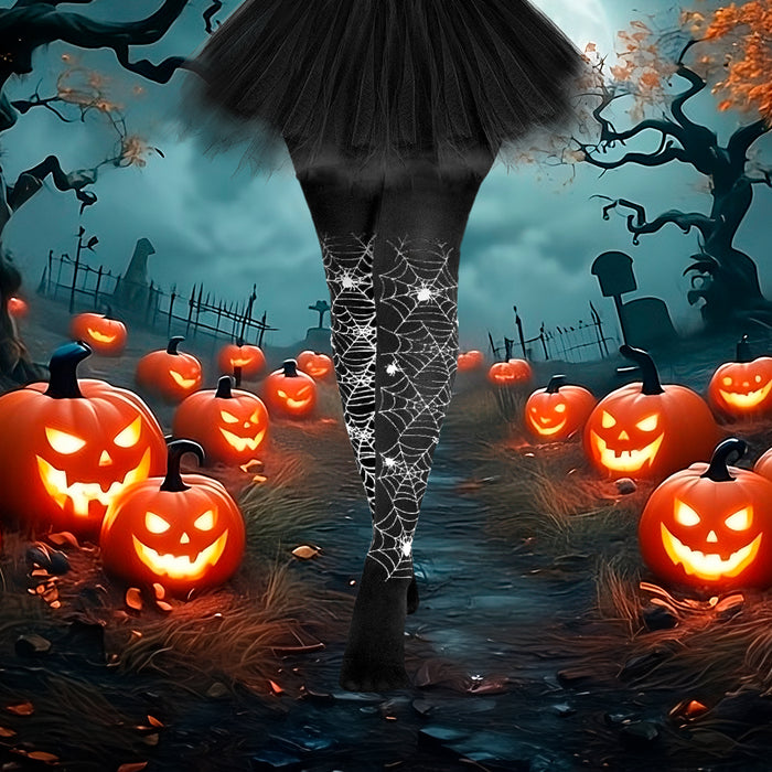 Medias color Negro con Diseño de Telaraña para Disfraz de Bruja