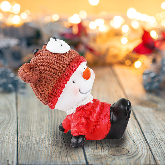 Muñeco de Nieve, Gorro Oso, Figura Decorativa de Cerámica