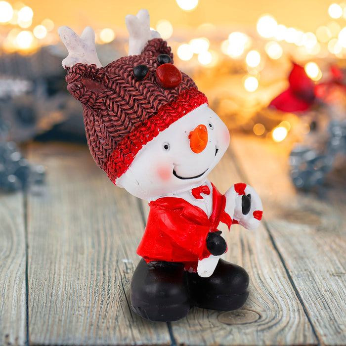 Muñeco de Nieve, Gorro Reno, Figura Decorativa de Cerámica