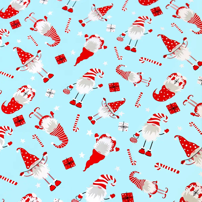 Papel para Envolver Regalos Navideño, Gnomo, Color Azul