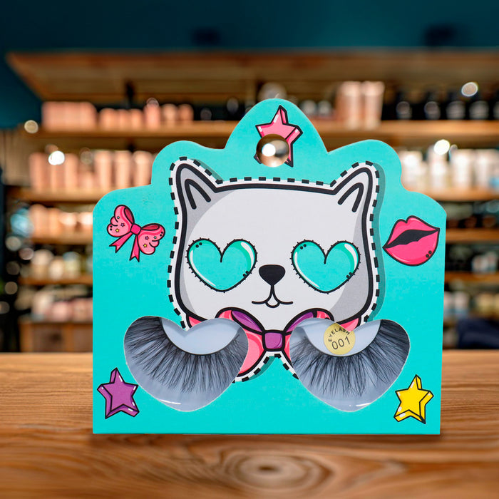 Pestañas Postizas, Empaque Aqua de Gatito con Corazones