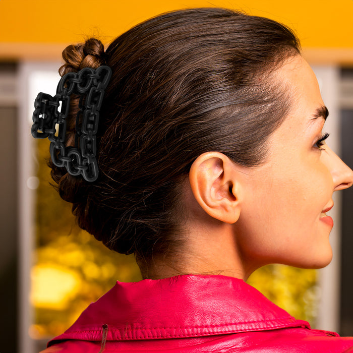 - Hecha de un material acrílico de plástico resistente y un resorte de metal estable, esta pinza para el pelo es duradera y fácil de usar.