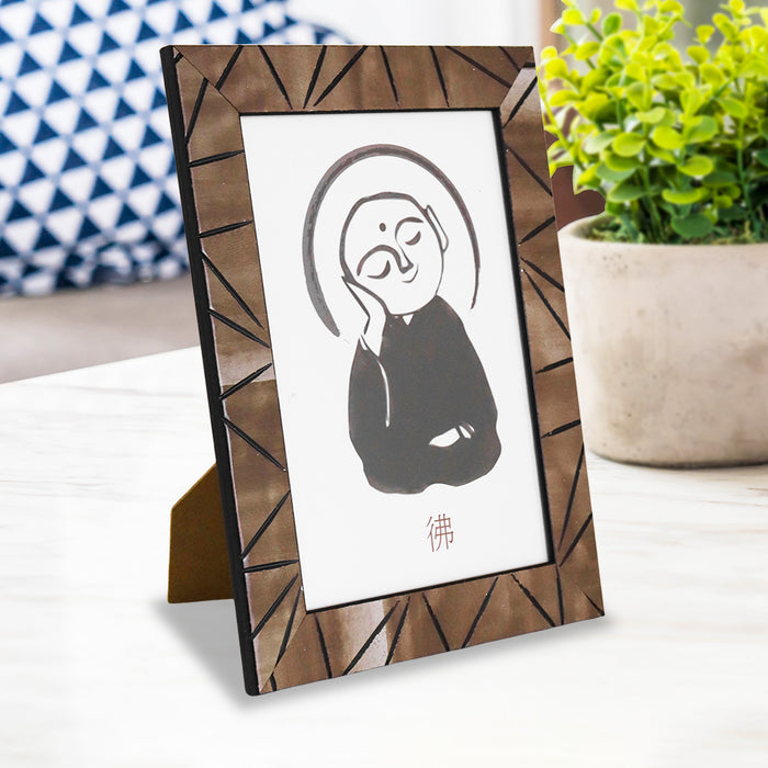 Portarretratos con marco color café que combina con cualquier parte de tu hogar u oficina, brindando un toque elegante.