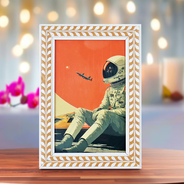Portarretratos con Marco Diseño Hojas color Beige 10x15cm