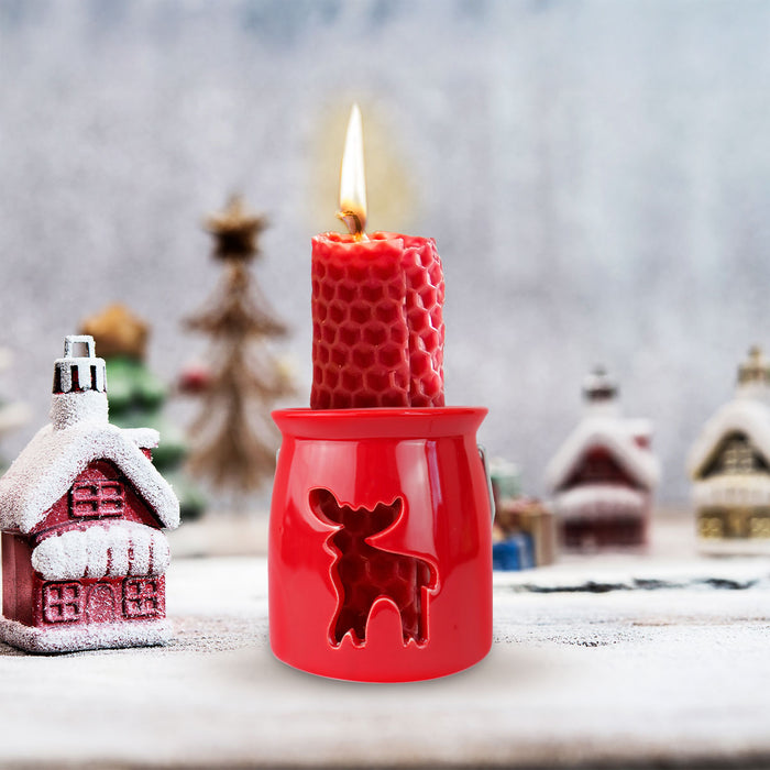 Portavelas, Diseño Reno, Cerámica, Color Rojo