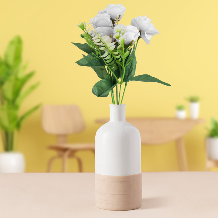 Ramo de Rosas Artificiales con 6 Cabezas, color Blanco