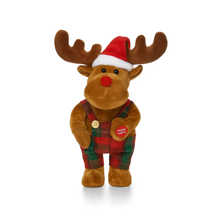 - Perfecto para decorar salas, recibidores o junto al árbol, este reno con movimientos y música hará que tus celebraciones sean inolvidables.