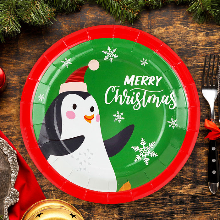 Set de 10 Platos de Cartón "Merry Christmas", Diseño Pingüino