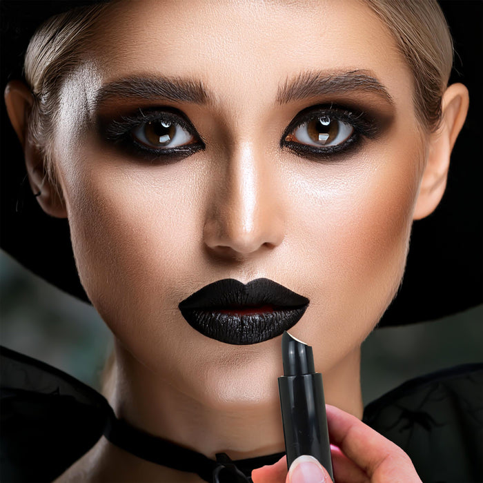 - El esmalte negro de acabado brillante asegura que tus uñas destaquen con un estilo gótico y elegante, mientras que el labial negro de larga duración complementa a la perfección cualquier look aterrador o dramático.