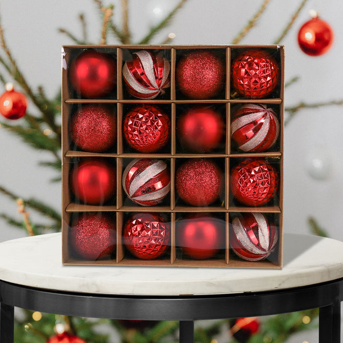 - Set de 16 esferas de Navidad color rojo: 16 esferas decorativas colgantes para decorar todos tus espacios de forma elegante y única.