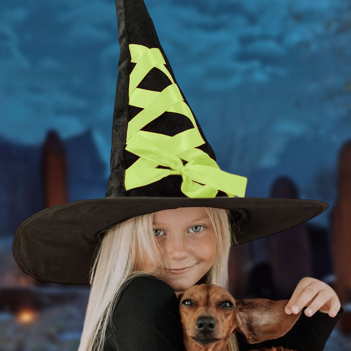 Sombrero de Bruja Negro Decorado con Listón Verde