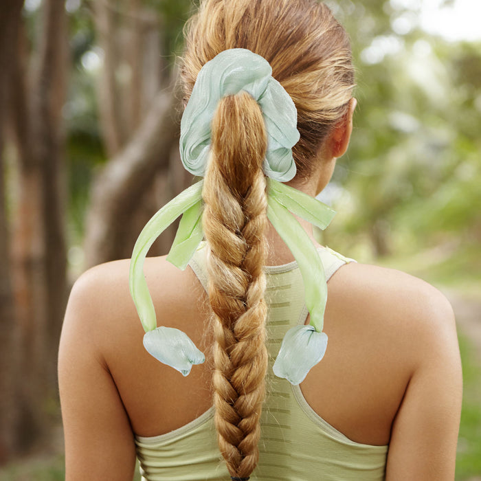 Agrega estilo y comodidad a tus peinados con este scrunchie suave y versátil.