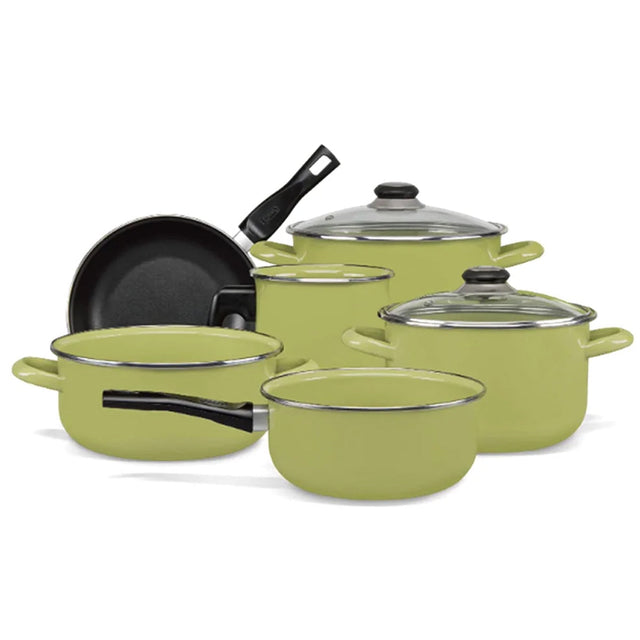 - Batería de acero vitrificado resistente y durable. El acero conserva el calor en la pieza.