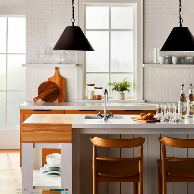 - Pantalla en forma de cono metálico que aporta un toque elegante y contemporáneo.